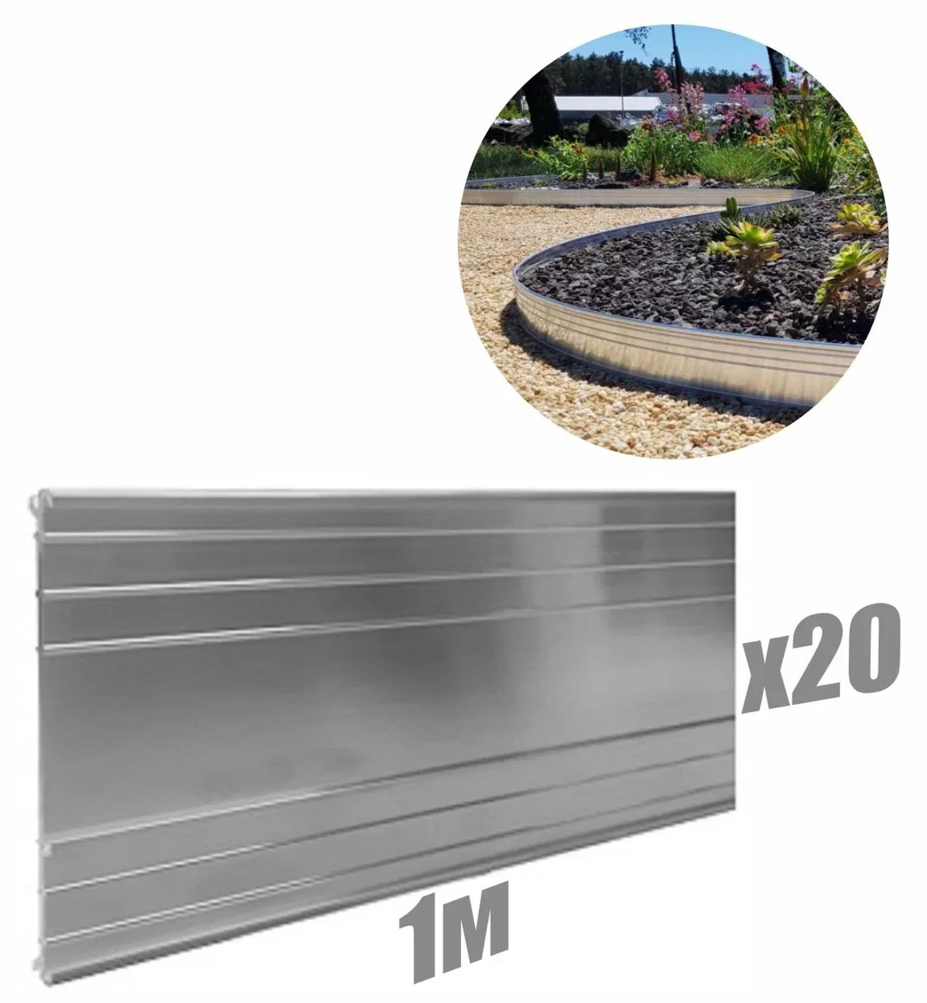 Jeu de 20 Bordure de Jardin en aluminium ultra solide 24cm x 1m (20m long) | Bordure Jardinn | Bordure jardin metal, couleur: non coloré
