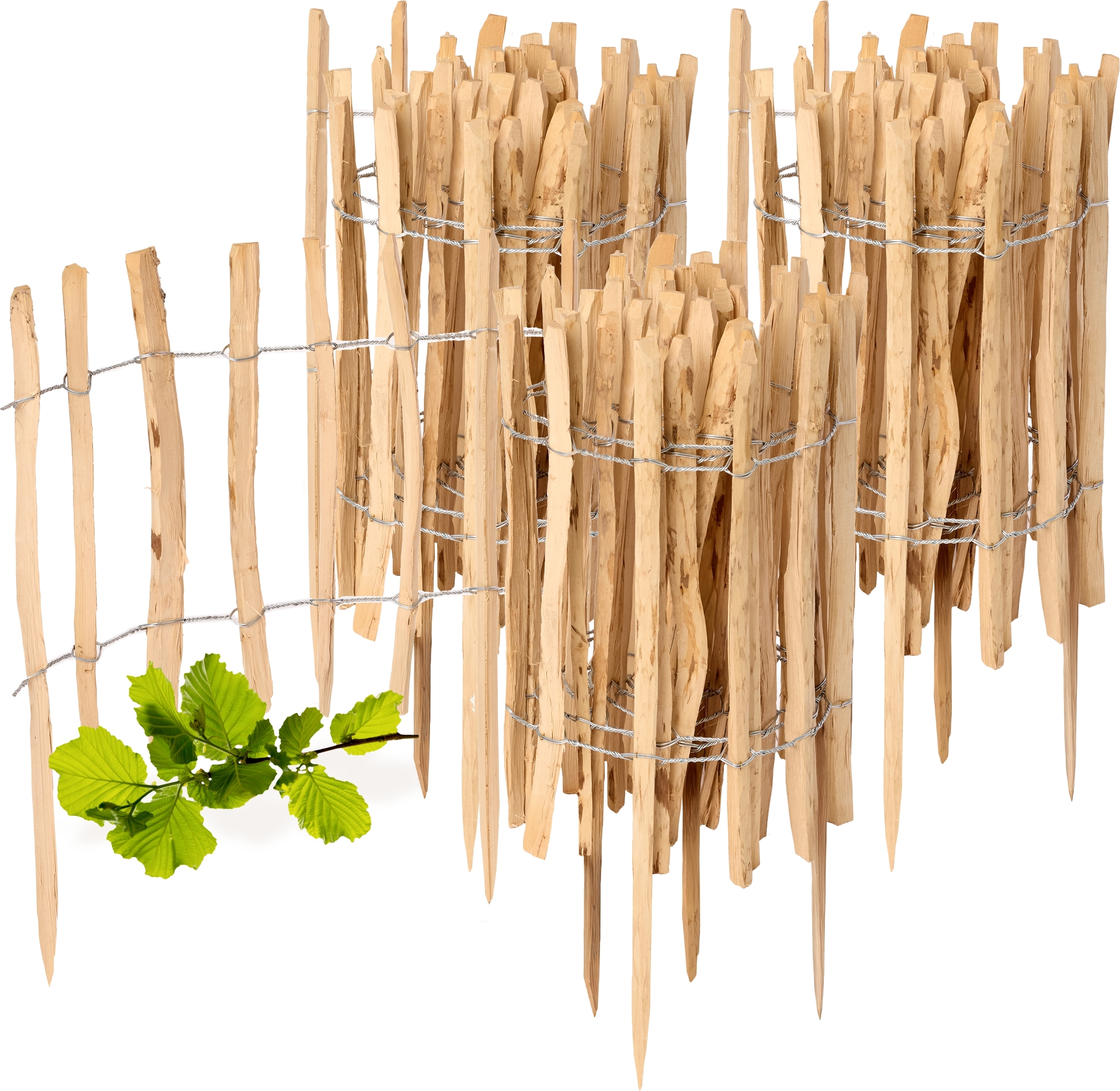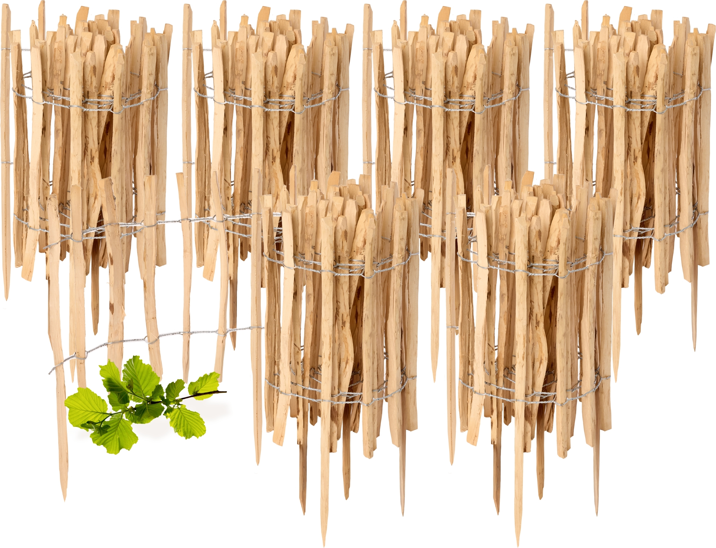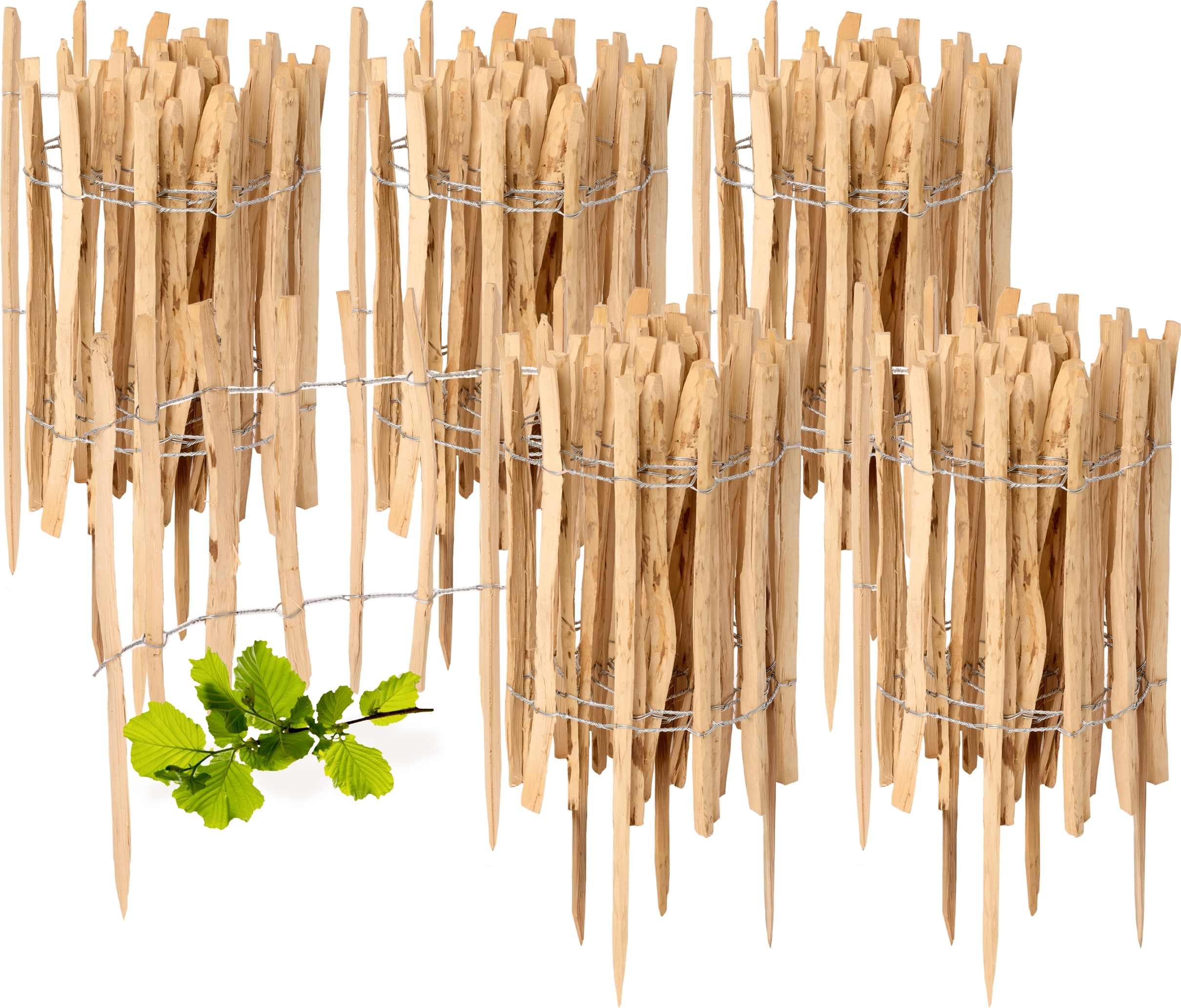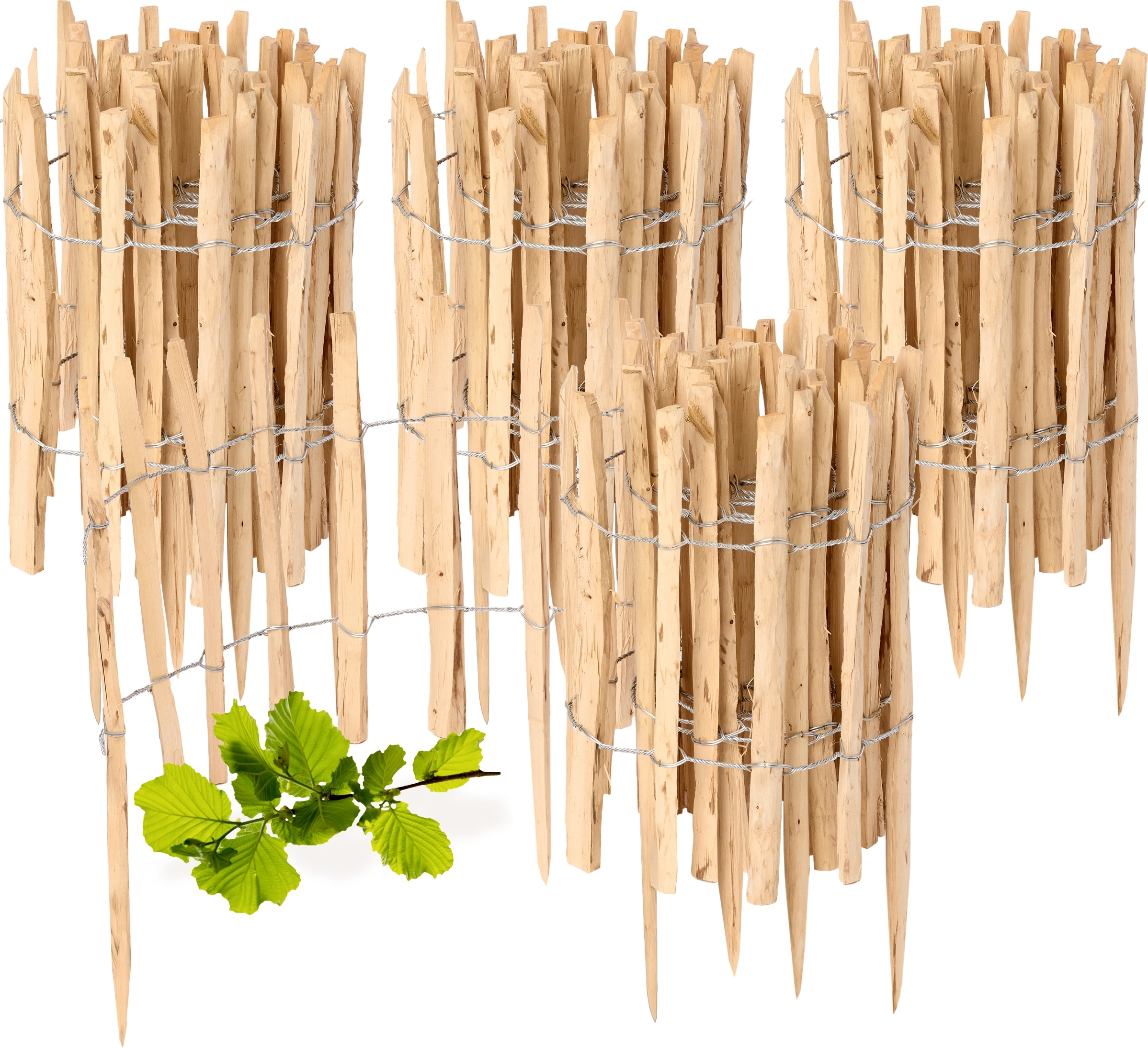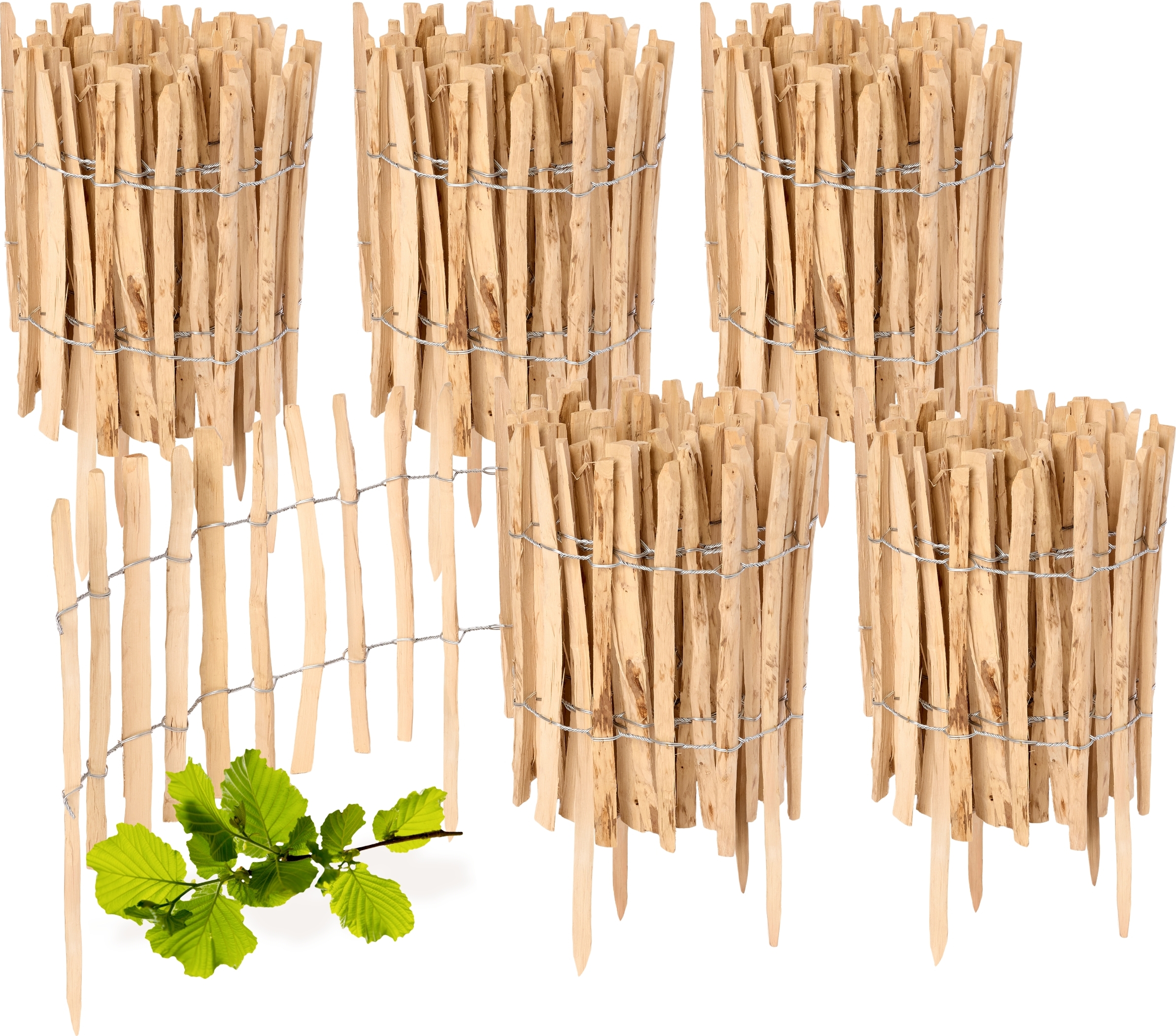 Clôture de jardin à enfoncer en noisetier, clôture de jardin, palissade, bordure de parterre, bois GD-0156 (4 pièces, 50 cm x 500 cm)