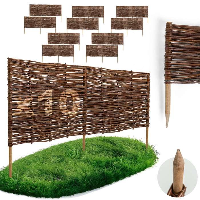 Bordure de Jardin Bois tressé en Osier et noisetier 1m x H 35 cm délimitation Bordure de pelouse Plates-Bandes Petite clôture Bois palissade