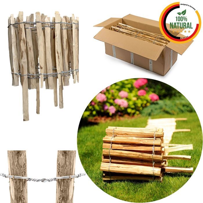 Clôture de jardin à enfoncer en bois de noisetier, clôture de jardin, palissade, bordure de parterre, bois GD-0156 (4 pièces, 35 cm x 500 cm)