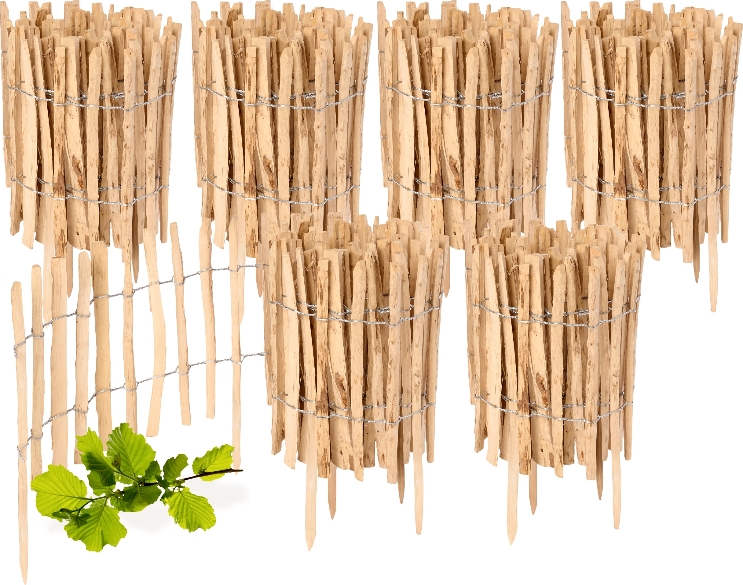 Clôture de jardin à enfoncer en noisetier, clôture de jardin, palissade, bordure de parterre, en bois GD-0156 (5 pièces, 50 cm x 500 cm)