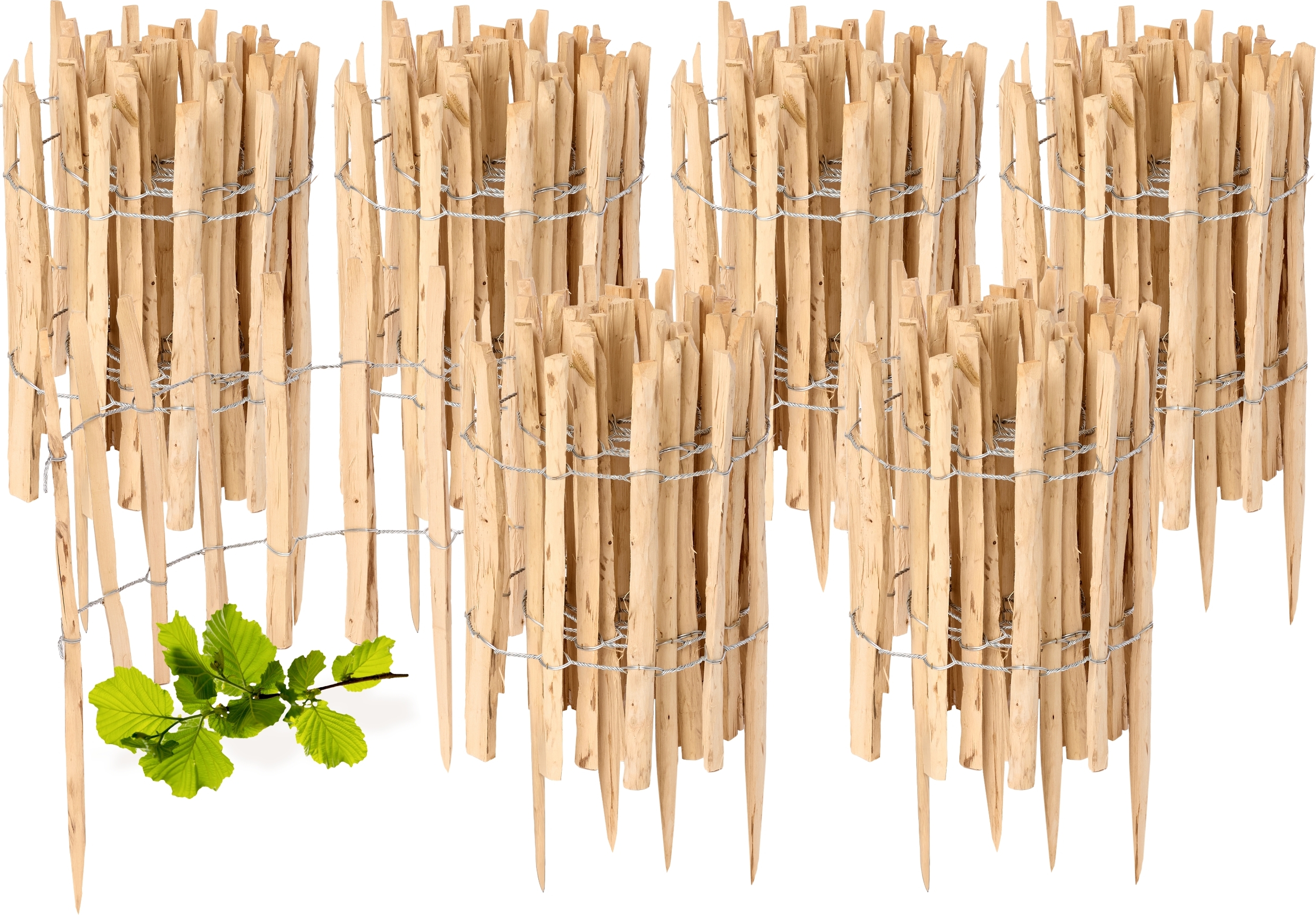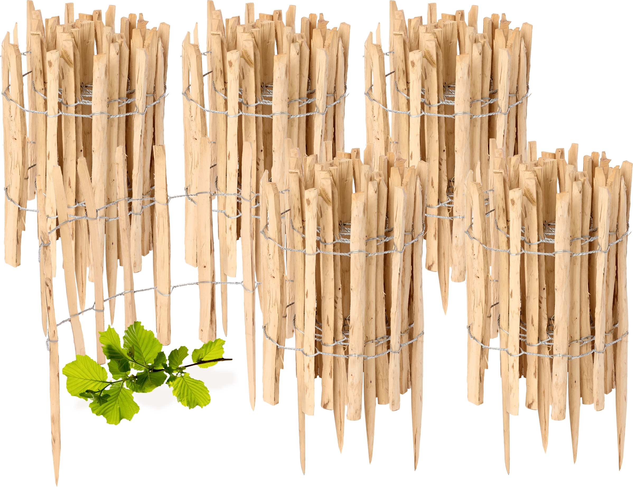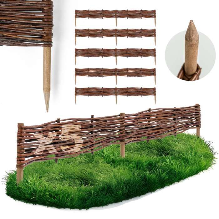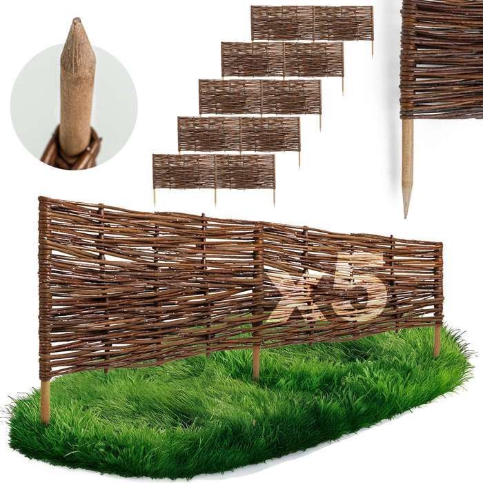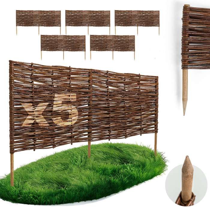 Clôture de jardin à enfoncer en noisetier, clôture de jardin, palissade, bordure de parterre, en bois GD-0156 (5 pièces, 35 cm x 500 cm)