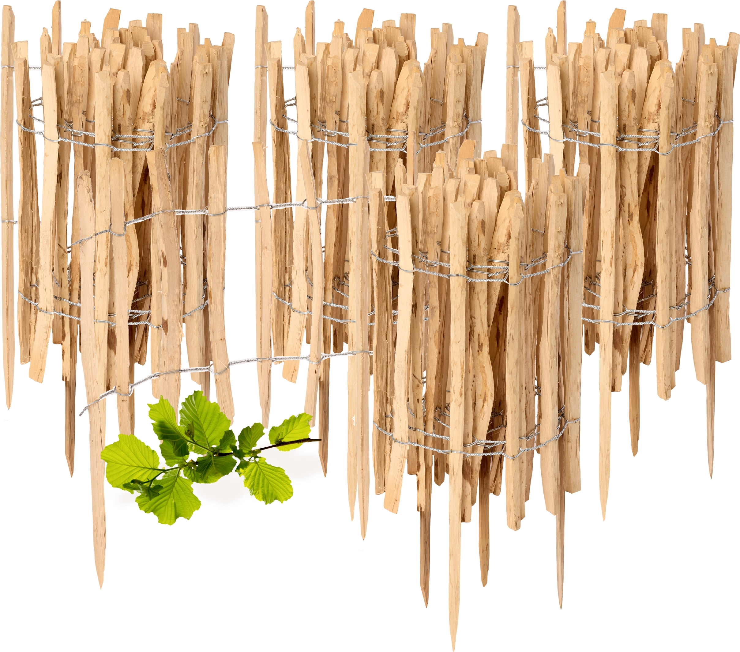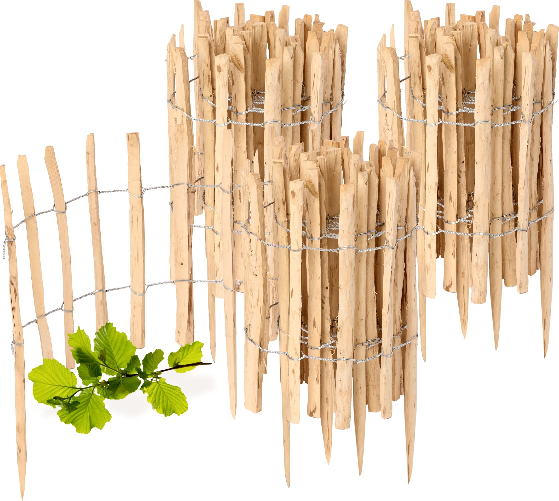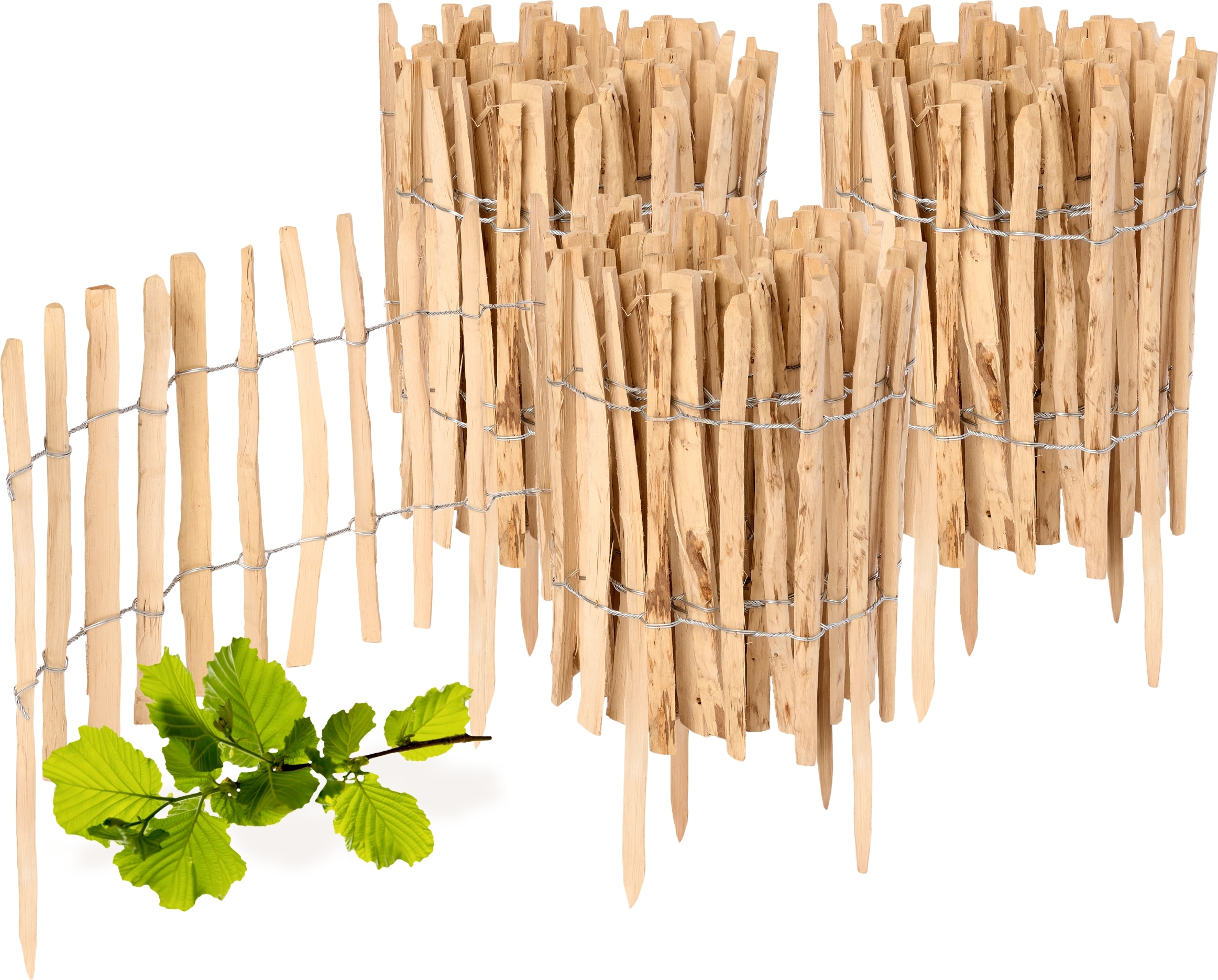 BOGATECO Lot de 3 clôtures de jardin en bois de noisetier - 120 cm x 20 cm - Bordure de parterre - Clôture en lattis - Enfichable