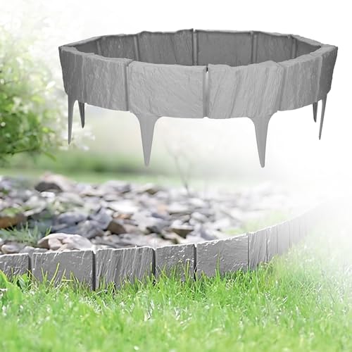 GARDENIX Bordure de pelouse en Plastique - Bordure de Parterre - Aspect Pierre - 3,9 m - Gris - 5 modules - Résistant aux UV - Palissade de Jardin - Polyvalent