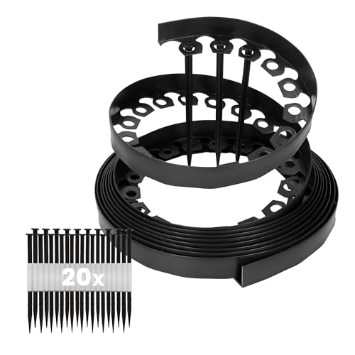 GARDENIX Bordure de pelouse Facile à Installer - en Plastique Noir - 20,6 m - sans Creuser - Bordure de Parterre en Plastique recyclé - Flexible et Durable - Fabriquée dans l'UE