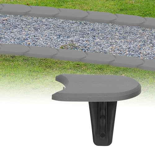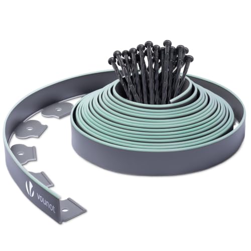 VOUNOT® Bordure de Jardin en Plastique 10 mètres avec 30 Piquets d'ancrage Bordurette de Pelouse Bordure de Gazon Flexible Idée de Jardin Hauteur 50mm Epaisseur 4mm Gris Bordé de Vert Clair