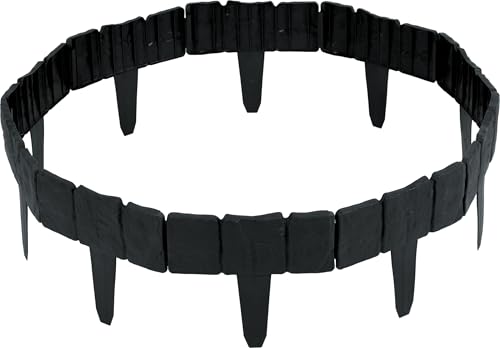 Ram® Bordure de pelouse en Plastique Souple avec 40 piquets de Fixation Noir 10 m