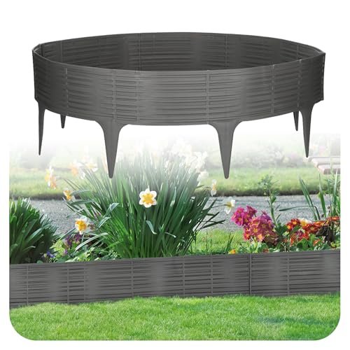 GARDENIX Bordure de pelouse en Plastique Aspect rotin 3,9 m 5 modules – Bordure de Jardin Grise – Bordure de Parterre Flexible – Bordure de Parterre de Fleurs – Clôture de Jardin en rotin