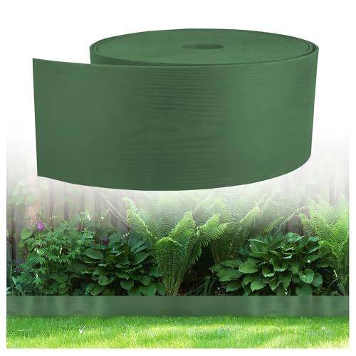 GARDENIX Bordure de pelouse Flexible Aspect Bois - en Plastique - Longueur : 10 m - Hauteur : 8 cm - Vert