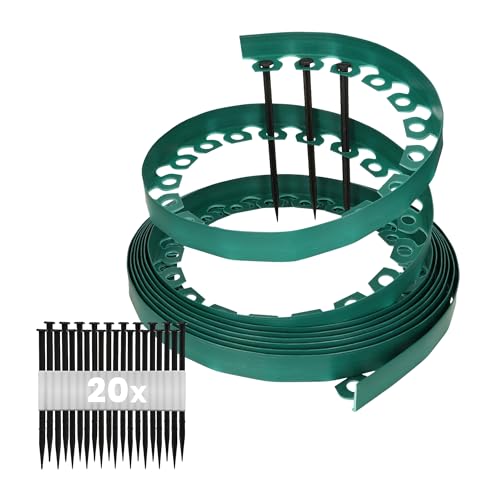 VOUNOT® Bordure de Jardin en Plastique 20 mètres avec 60 Piquets d'ancrage Bordurette de Pelouse Bordure de Gazon Flexible Idée de Jardin Hauteur 50mm Epaisseur 4mm Vert Bordé de Vert Clair