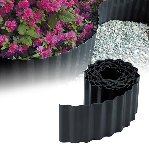 GARDENIX Bordure de lit ondulée Bordure de Plate-Bande Bordure de pelouse Plastique Longueur 9 m, Hauteur 15 cm, Anthracite
