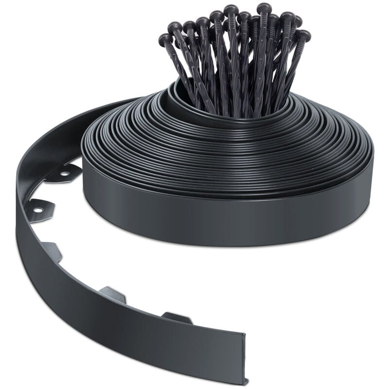 Bordure de jardin flexible en pvc 20m avec 40 piquets - hauteur 5cm - anthracite - Vounot