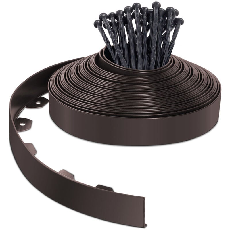 Bordure de jardin flexible en pvc 20m avec 40 piquets - hauteur 5cm - marron - Vounot