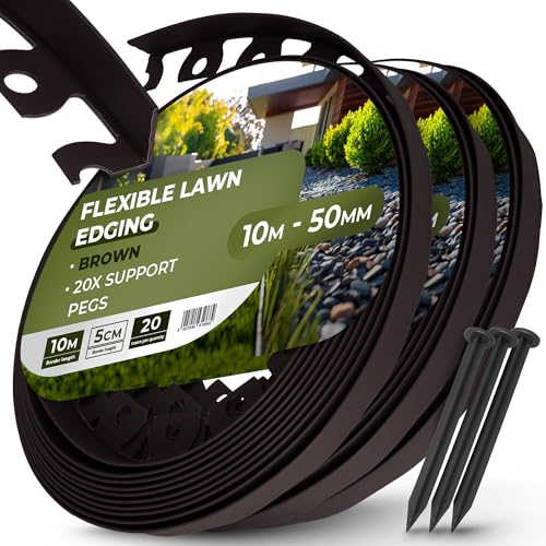 Bordure De Jardin Souple En Plastique De 20 M - Hauteur : 5 Cm - Avec 60 Piquets De Fixation - Pelouse, Allée, Parterre De Fleurs - Bordure D'Extérieur Facile À Installer