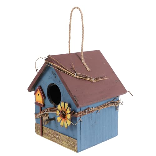 Glitzhome Nichoir à Oiseaux à Suspendre de 24,6 cm de Hauteur pour extérieur, terrasse, Jardin, Maison pour Animaux domestiques, nichoir en Bois Vieilli, Feuilles Bleues
