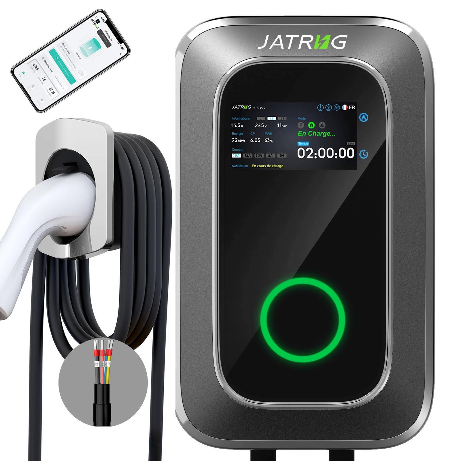 Chargeur EV Type 2 Feyree avec écran 4,3 pouces, 32A, 7,6 kW, équilibrage dynamique de la charge, 11 kW, 22 kW, triphasé, borne de recharge murale EVSE avec application et historique de charge