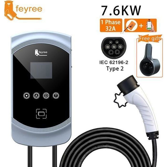 Morec APP 7.2kw 32A Monophasé VE Wallbox Borne de Recharge Connexion Bluetooth/Wifi avec Type2 Câble