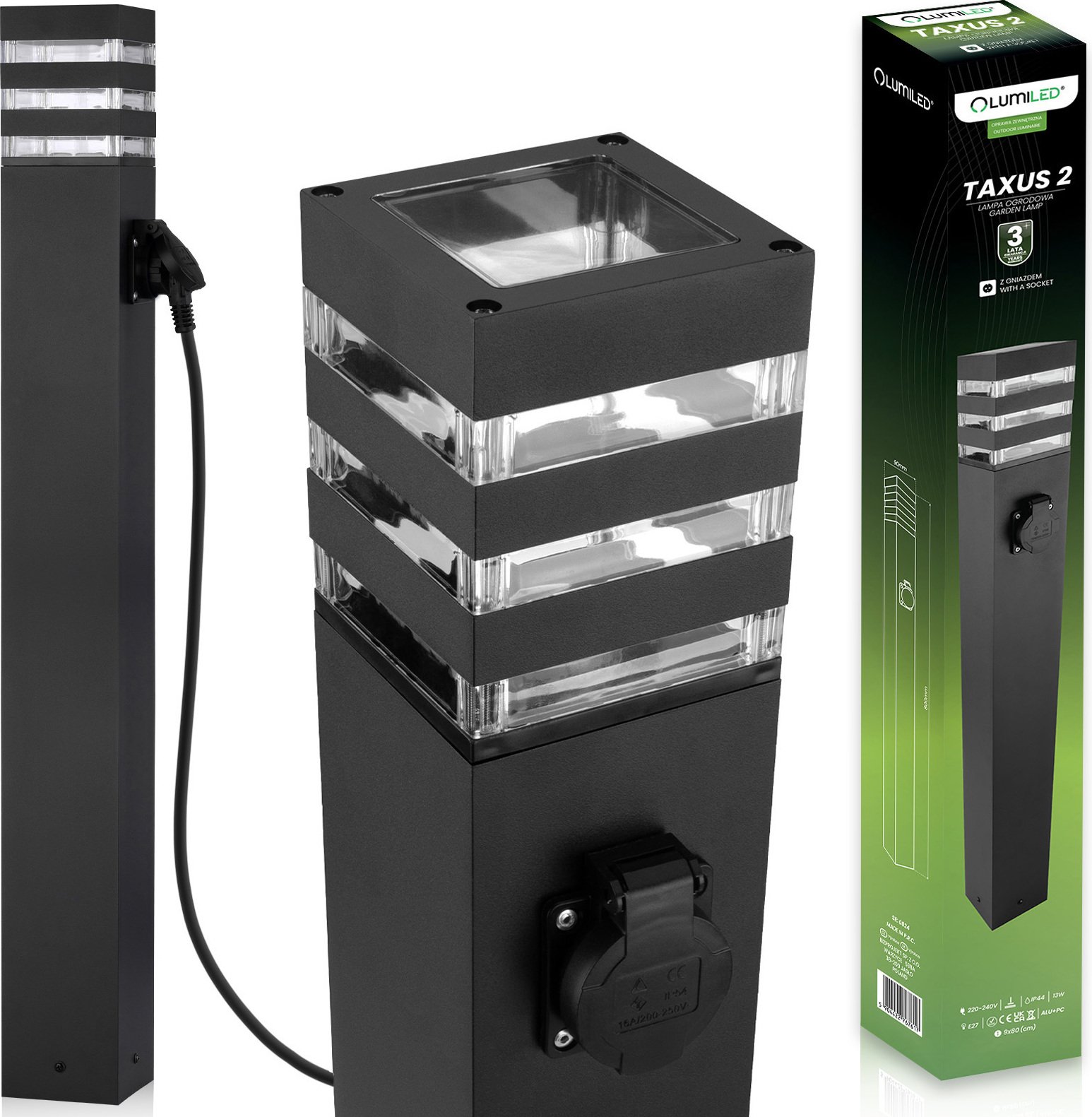 LUMILED Lampe d'allée extérieure Borne d'éclairage Lampadaire extérieur avec prise de courant Lampe de jardin Lampe d'allée Colonne électrique 60cm IP44 Douille E27 max 13W