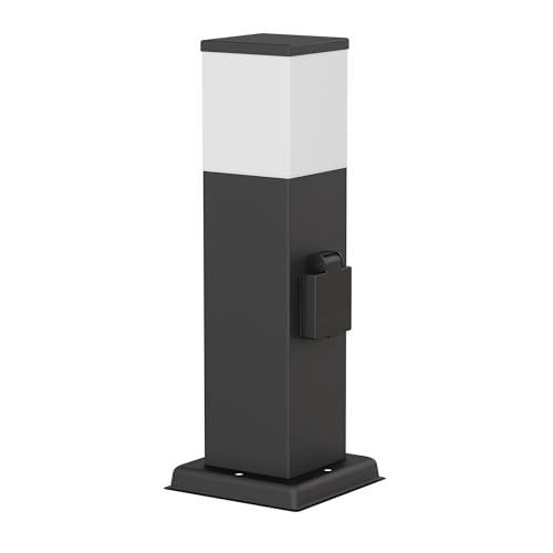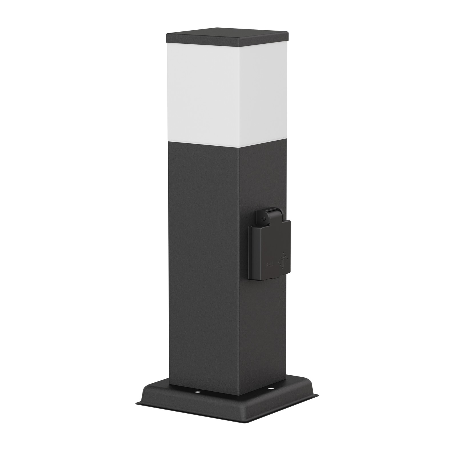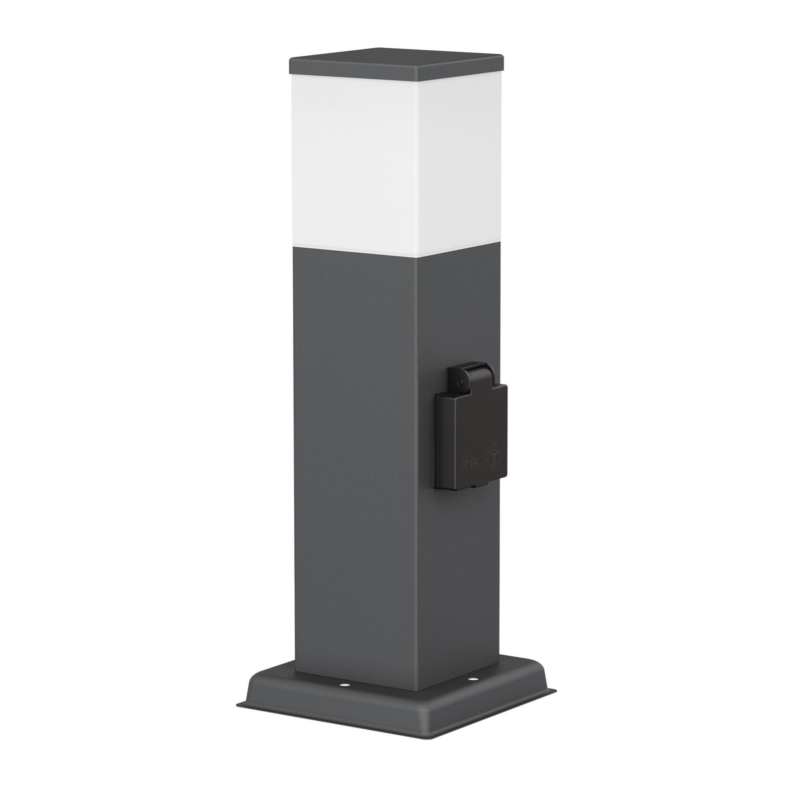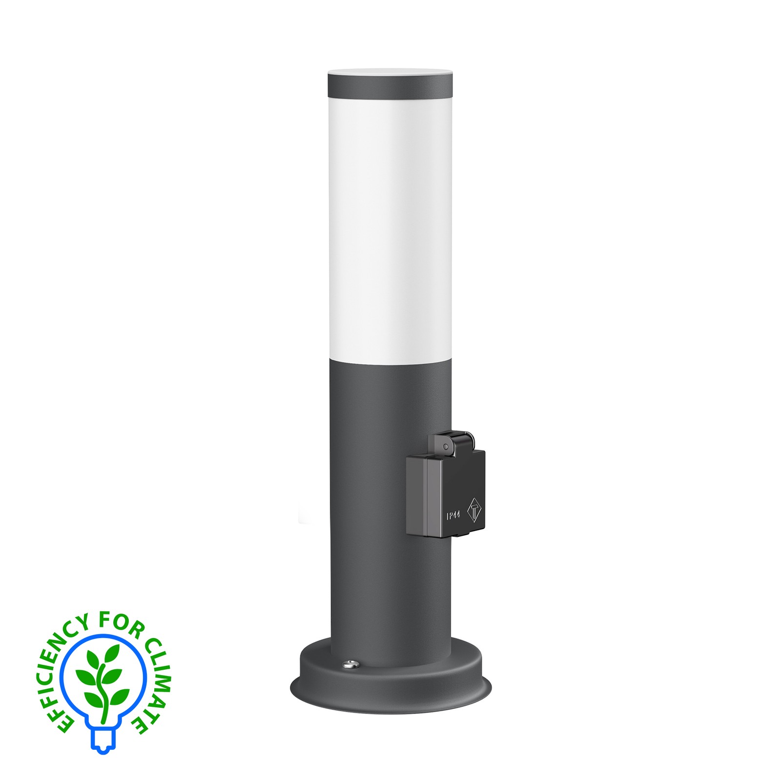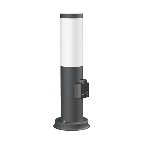 ledscom.de Borne d'éclairage PORU avec prise de courant pour l'extérieur, anthracite, 39 cm, ampoule E27 incluse, classe d'efficacité énergétique A, (blanc chaud, 4W, 935lm)