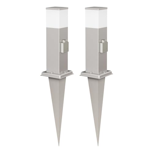 ledscom.de 2 pièces Lumière de chemin/Borne d'éclairage PORU pour l'extérieur, IP44, 39 cm, inox, 1x E27 max. 40W, prise de courant