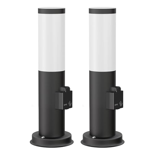 ledscom.de 2 pièces Lumière de chemin/Borne d'éclairage PORU pour l'extérieur, IP44, 39 cm, noir, 1x E27 max. 40W, prise de courant
