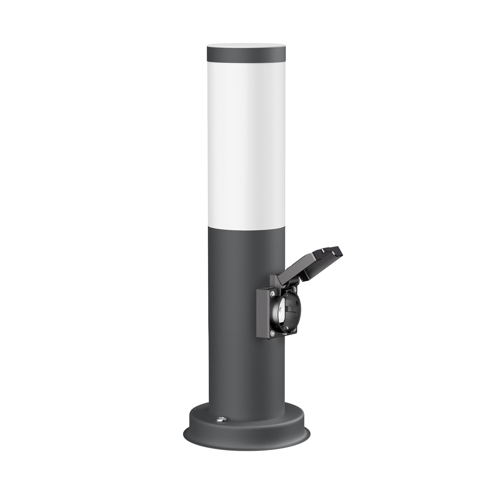 Borne d'éclairage PORU avec prise de courant pour l'extérieur anthracite rond