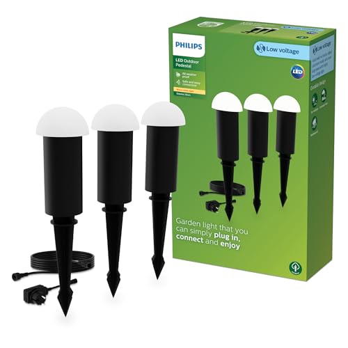 Philips Desi Borne d’Extérieur 24 V GardenLink Basse Tension, 2700 K, 180 lm, Noir, Kit de Démarrage, Lot de 3, Prise EU