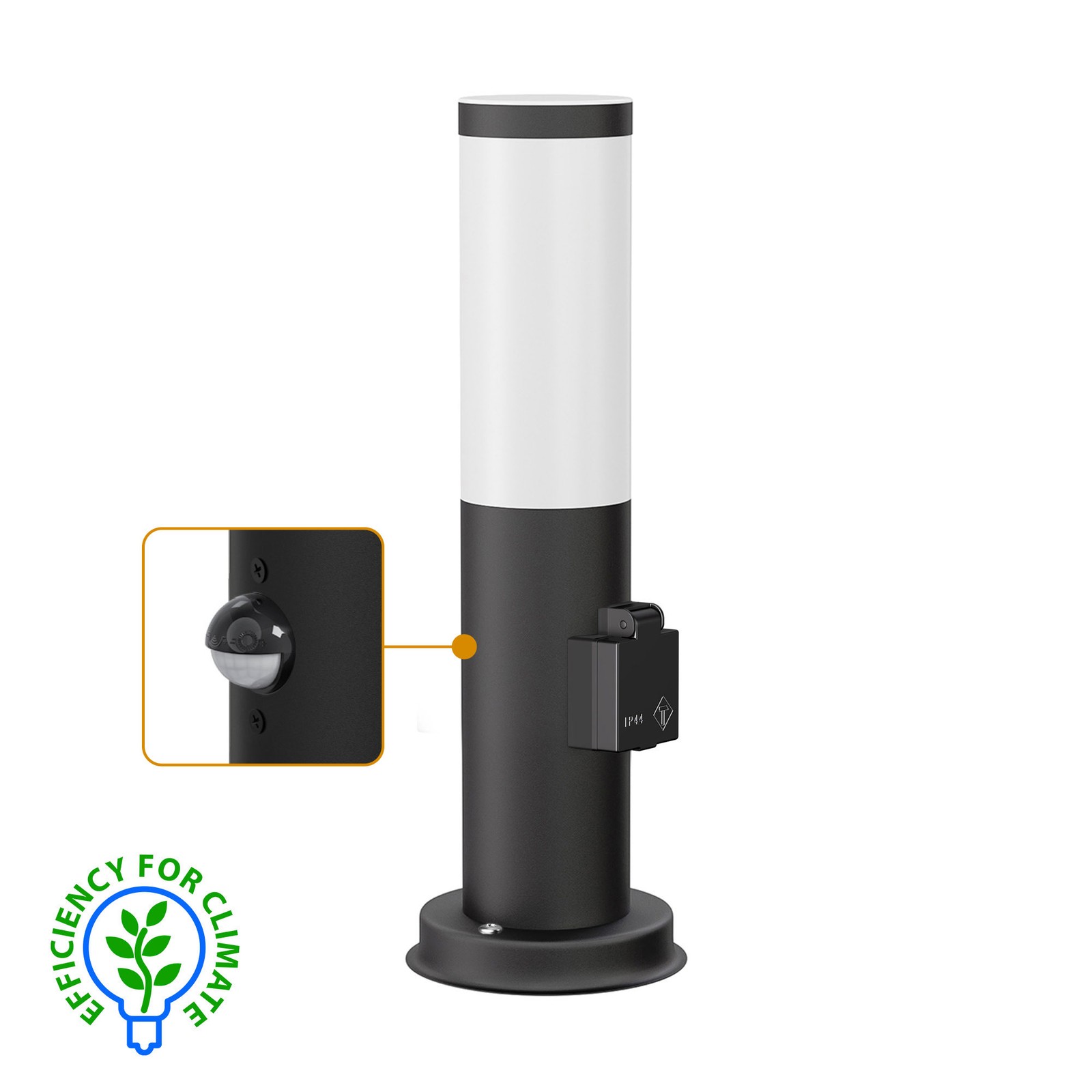 ledscom.de Lumière de chemin Borne d'éclairage de jardin PORU capteur extérieur IP44 38cm noir 1xE27 max.15W prise de courant