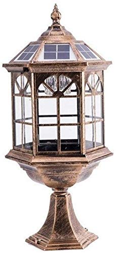 ACMHNC Vintage Lampadaire De Jardin Solaire, IP54 Lampe De Jardin Borne Solaire Lampe Pilier Exterieur Classique Retro Lampe De Chemin Aluminium Pour Allée Patio, 2200Mah, 3000K/6000K,Laiton