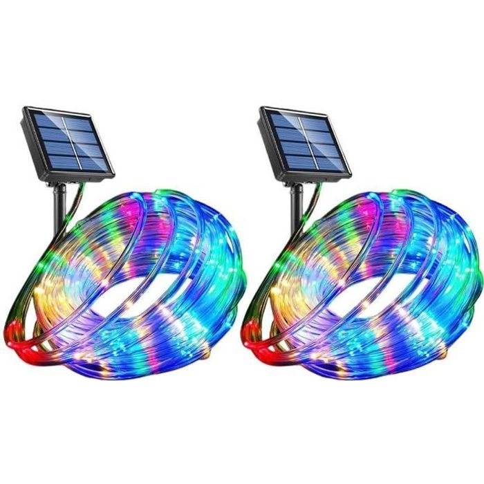 2 PCS Guirlande Lumineuse Borne Solaire 12m 100 LED Extérieur Étanche Fil de Cuivr 8 Modes Pour Jardin Patio Mariage Noël Décoration