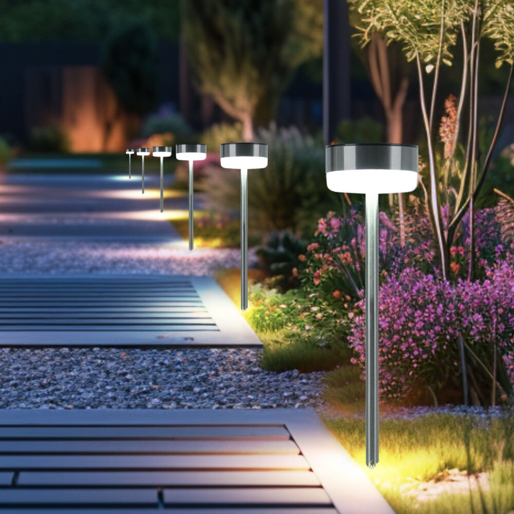 Lampe Solaire Lampe D'Extérieur Borne Lumineuse LED Jardin Pointe Inox 2er Set