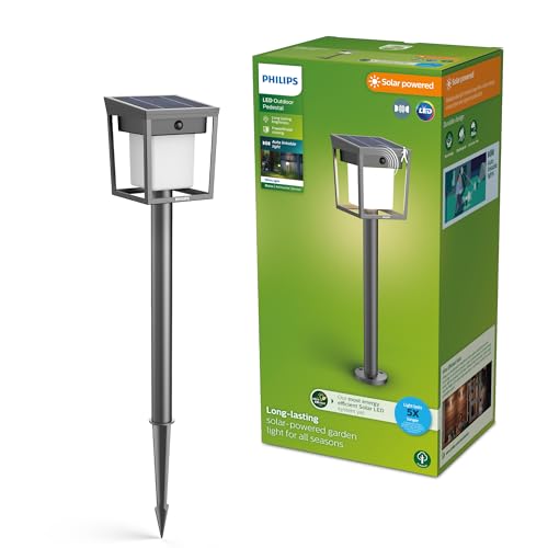 Philips Blaise Borne d'éclairage solaire d’extérieur UltraEfficient, 3000 K, 250/20 lumens, Anthracite