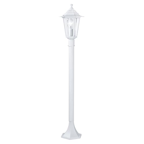 Eglo Lampadaire extérieur Laterna 5, luminaire sur pied, borne lumineuse, lampe de jardin et de chemin en fonte d’aluminium blanc et verre, douille E27, IP44