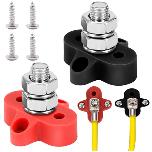 Dioche 1 Post Gro4Pcs Borniers de Batterie 12 V 24 V Bornier de Distribution d'énergie Sûr pour Câblage Robuste – Idéal pour Les Camping-Cars, Camions, Navires et Plus