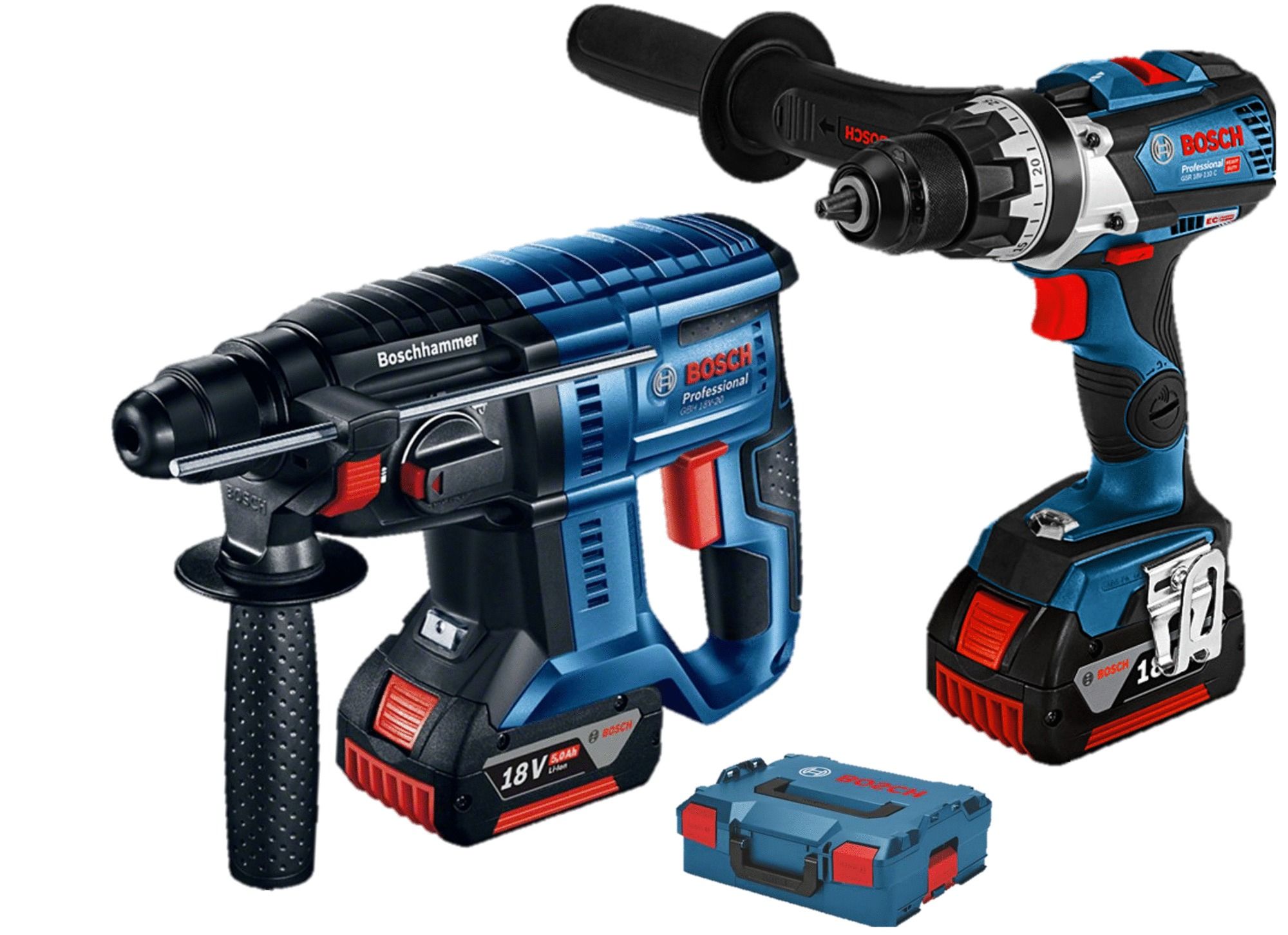 Pack de 2 outils 18V GSR 18V-110 / GBH 18V-21 + 2 batteries 5 Ah + chargeur + coffret L-BOXX - BOSCH