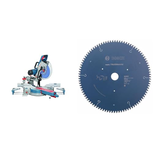 Bosch Professional Scie à Onglets Radiale GCM 12 SDE (1800W, Diamètre de la lame 305 mm, Ø alésage 30 mm) Bleu + 2608642529 2608642529-Disco de Sierra Circular CSB Expert multimat.: 305x30x96D neg