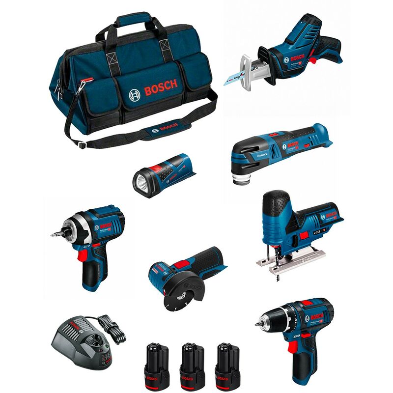 Bosch - Kit BMKB8-28DD3 (GSR12V-15+GDR12V-105+GWS12V-76+GST12V-70+GOP12V-28+GSA12V-14+GLI12V-80+GHO12V-20+3x2,0Ah+GAL1230CV+HDBAG)