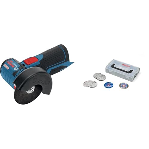 Bundle of Bosch Professional 12V System meuleuse angulaire sans-fil GWS 12V-76 (3 disques à tronçonner, diamètre de disque : 76 mmr) + 9 pièces 76mm-Disc Set + mini L-Boxx, Ø 76 mm