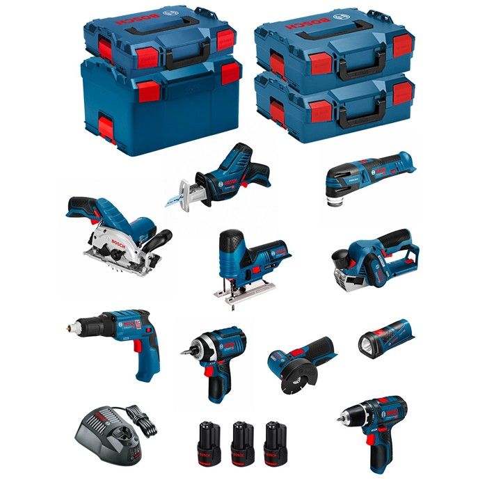 BOSCH Kit 12V BMK10-28CD3 (GSR12V-15+GTB12V-11+GDR12V-105+GWS12V-76+GST12V-70+GKS12V-26+GOP12V-28+GSA12V-14+GLI12V-80+GHO12V-20)