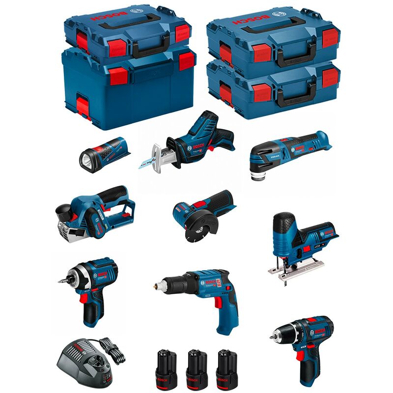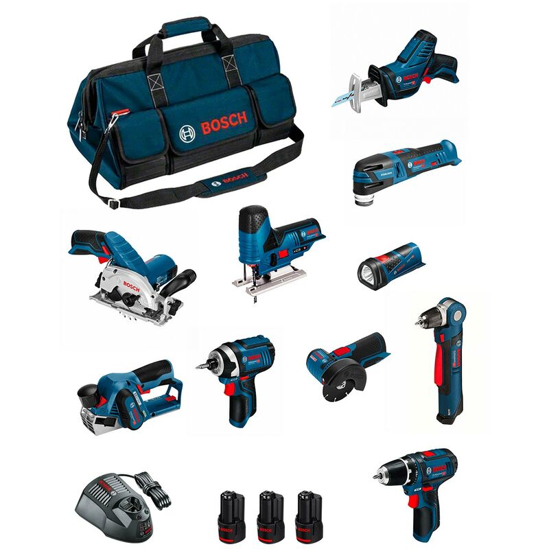Bosch - Kit 12V BMK10-28CD3 (GSR12V-15+GTB12V-11+GDR12V-105+GWS12V-76+GST12V-70+GKS12V-26+GOP12V-28+GSA12V-14+GLI12V-80+GHO12V-20)