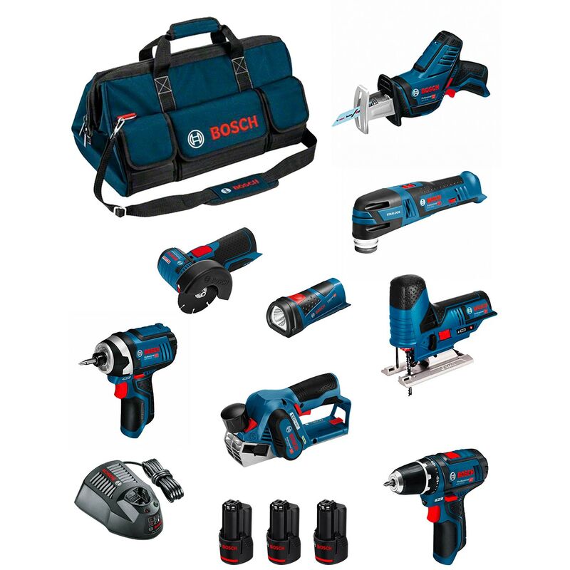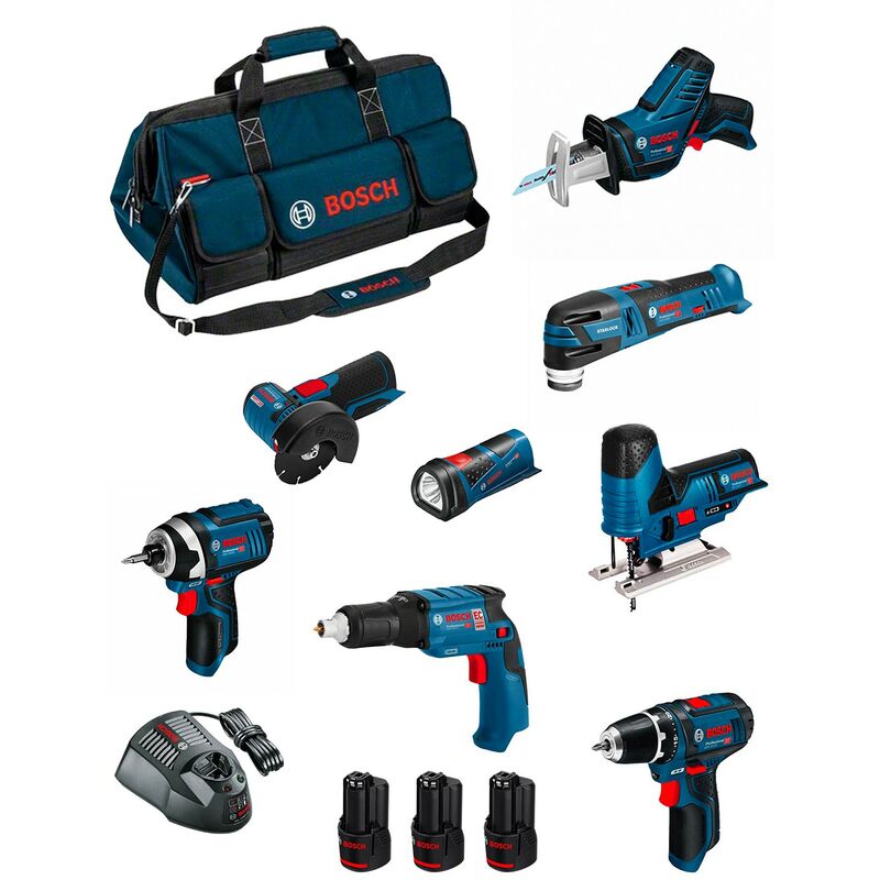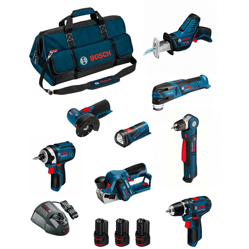 Bosch - Kit BMKB9-28BD3 (GSR12V-15+GDR12V-105+GKS12V-26+GWS12V-76+GST12V-70+GOP12V-28+GSA12V-14+GWB12V-10+GLI12V-80+3x2,0Ah)