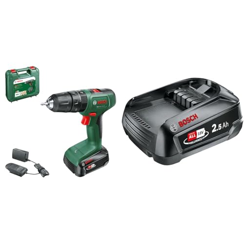 Bosch Perceuse-visseuse à percussion sans fil EasyImpact 18V-38 (1 batterie 2,5 Ah; système 18 V; dans coffret de transport) + Bosch Home and Garden Batterie PBA 18V 2.5Ah W-B 1600A005B0 Noir