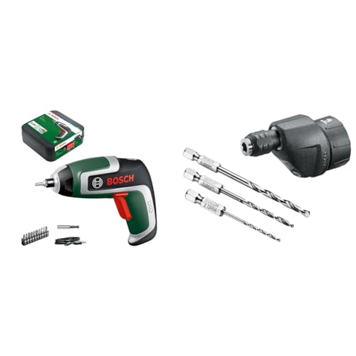Bosch Home and Garden Visseuse Compacte sans fil IXO, Vert & Mandrin excentré Bosch - Adaptateur pour perceuse/visseuse IXO avec jeu de forets