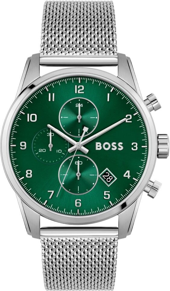 BOSS Montre Chronographe Quartz pour Homme de 44 mm Collection SKYMASTER avec Cadran Gris, Bracelet en Maille Acier Inoxydable Gris, Fonction Date, Résistance à l'eau 5ATM - 1513837