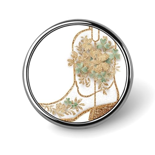 Broche ronde en forme de botte de cowgirl blanche décorée de trèfles pour homme et femme