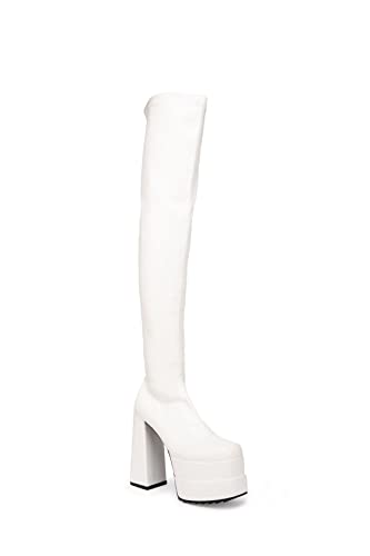 Lamoda Femme Vous ne Pouvez Pas Vous Tenir Debout Botte Haute Jusqu'au Genou, Blanc PU, 41.5 EU