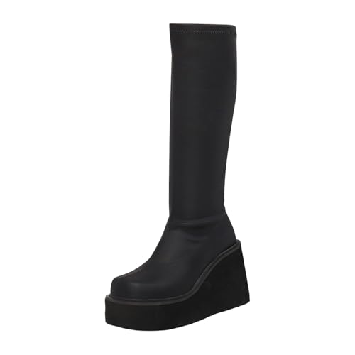 Générique Botte Femme Talon Compensé,Botte Haute Grande Taille Boots Longues ÉLéGant en Cuir Souple Semelle éPaisse Chaussures Confortable DéContractéEs Couleur Unie Boots Au Genou