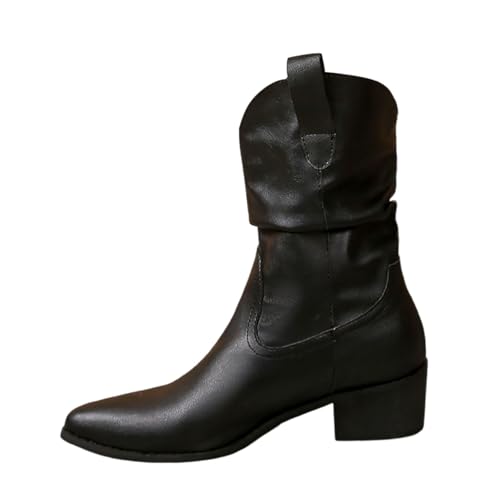 Générique Bottes Cowboy Femme,Boots Femme,Bottines Femme,Botte Cowboy Femme, Bottes en avec Fermeture Éclair Plissées Bottes Basses Bottines Courtes Chaussures d'hiver Boots,Bottes Western Femme