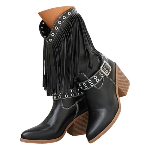 Botte Cowboy Femme, Santiag Femme, Cowgirl Boots Classique Bottine Santiags Talon Épais Bottes Cowboy Western Elégante Botte Chaussures pour Concerts, Voyages Et Tenues De Tous Jours