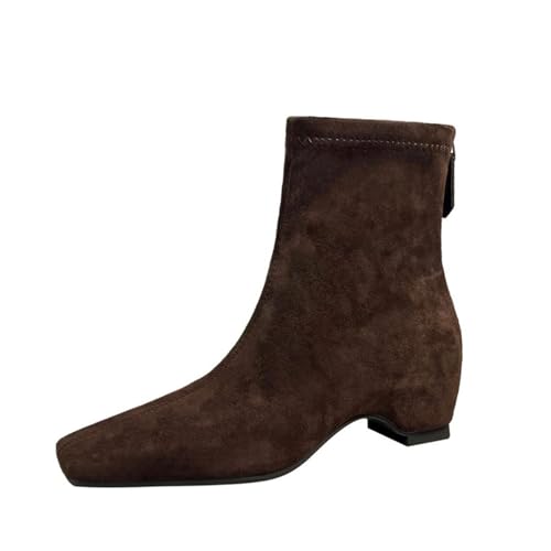 Générique Femme Bottines Classique Bottines en Daim Talon Haut Casual Rétro Mode Botte 3CM (35,Kaki)